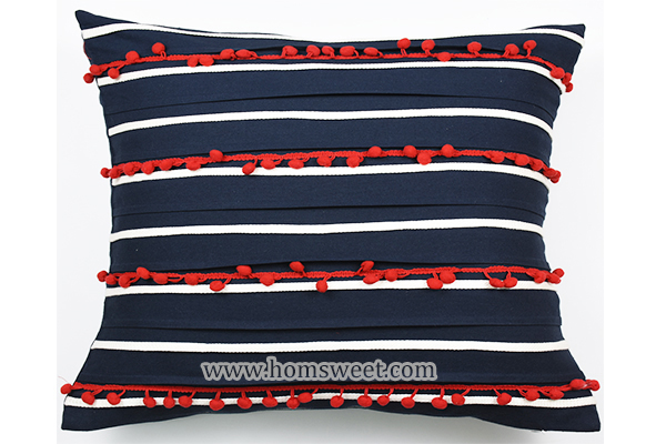 Fashion Stripe Line and Pom Pom Canvas Pillow... -