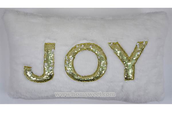 Joy Embroidery Solid Faux Fur Pillow -