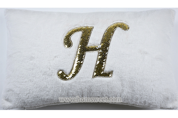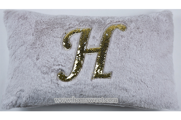 H Embroidery Botton printing Faux Fur Pillow...