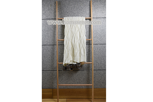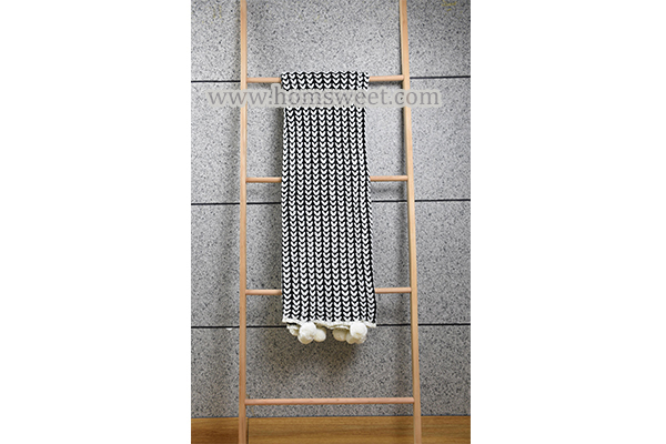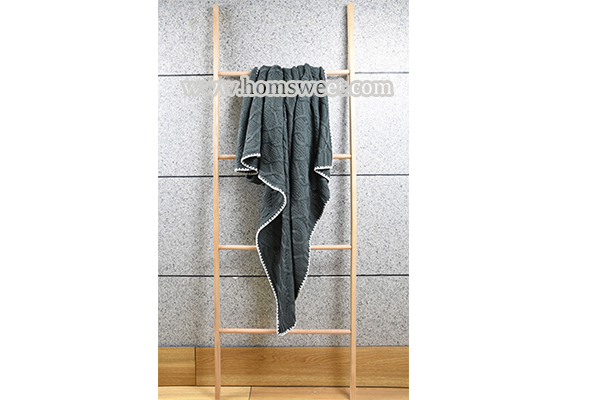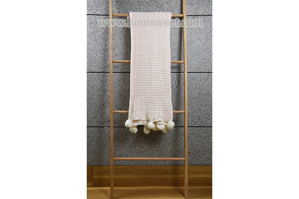 Luxury Knitted Throw With Faux Fur Pom Pom -
