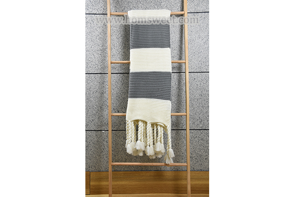 Elegant Knitted Throw With Fringes